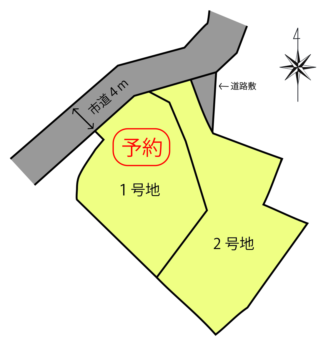 | 接道状況 | 市道入山瀬浅間西3号線(幅員=4m) 間口=1号地7.9m/2号地5.5m(道路敷込7.5m) |